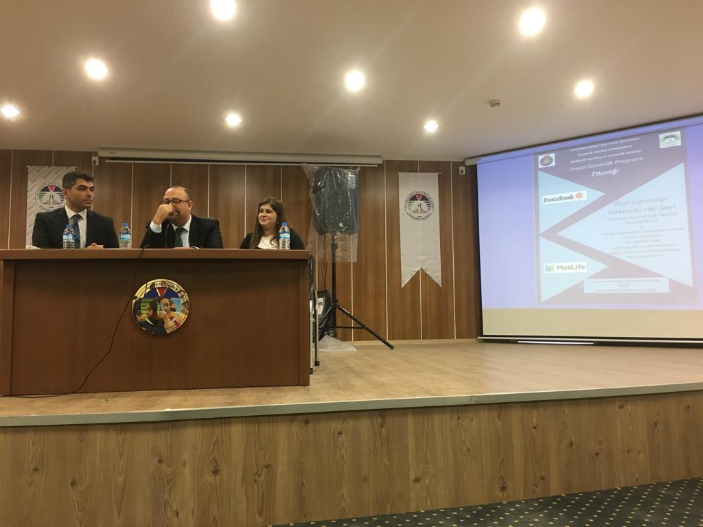 Sosyal Güvenliğe Giriş dersi kapsamında "Özel Sigortalar"ı öğrencilerimize aktarmak üzere Denizbank ve Metlife Sigorta öğrencilerimiz ile biraraya geldi. Oldukça keyifli geçen etkinlikte Bireysel Emeklilik Sigortası (BES) hakkında öğrencilerin sorularını yanıtlayan Metlife Çukurova Bölgesi Uzman Finansal Danışmanı Sn. Bahadır Say'a ve Denizbank Pazarcık Şube Müdürü Sn. Latif Partlat ile ekibine teşekkür ederiz.