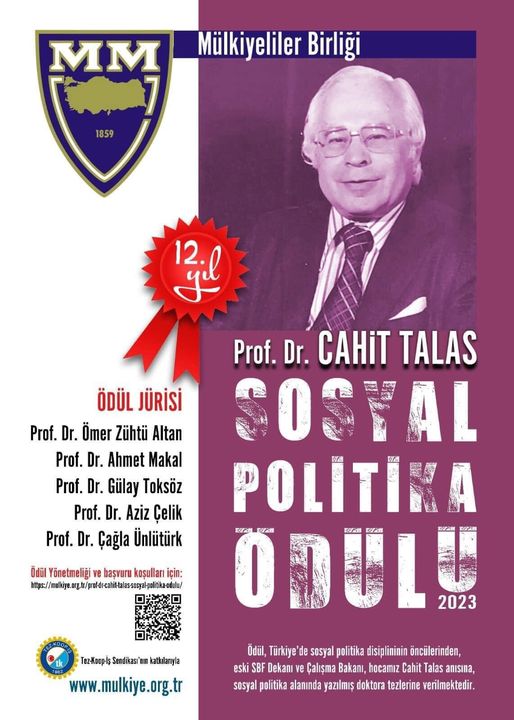 Bölümümüz hocalarından Öğr. Gör. Dr. Aslı KILINÇ, “Tarımda Çocuk Emeğinin Hane İçinde Yeniden Üretimi: Adıyaman Tütün İşçiliği Örneği” başlıklı doktora tezi ile Türkiye’de sosyal politika disiplininin öncülerinden, eski Mülkiye Dekanı ve Çalışma Bakanı Prof. Dr. Cahit Talas anısına 2023 yılında 12. defa düzenlenen “Prof. Dr. Cahit Talas Sosyal Politika Ödülü”ne layık görüldü. Ankara'da düzenlenen törende ödülünü Prof. Dr. Gülay Toksöz'den aldı.
