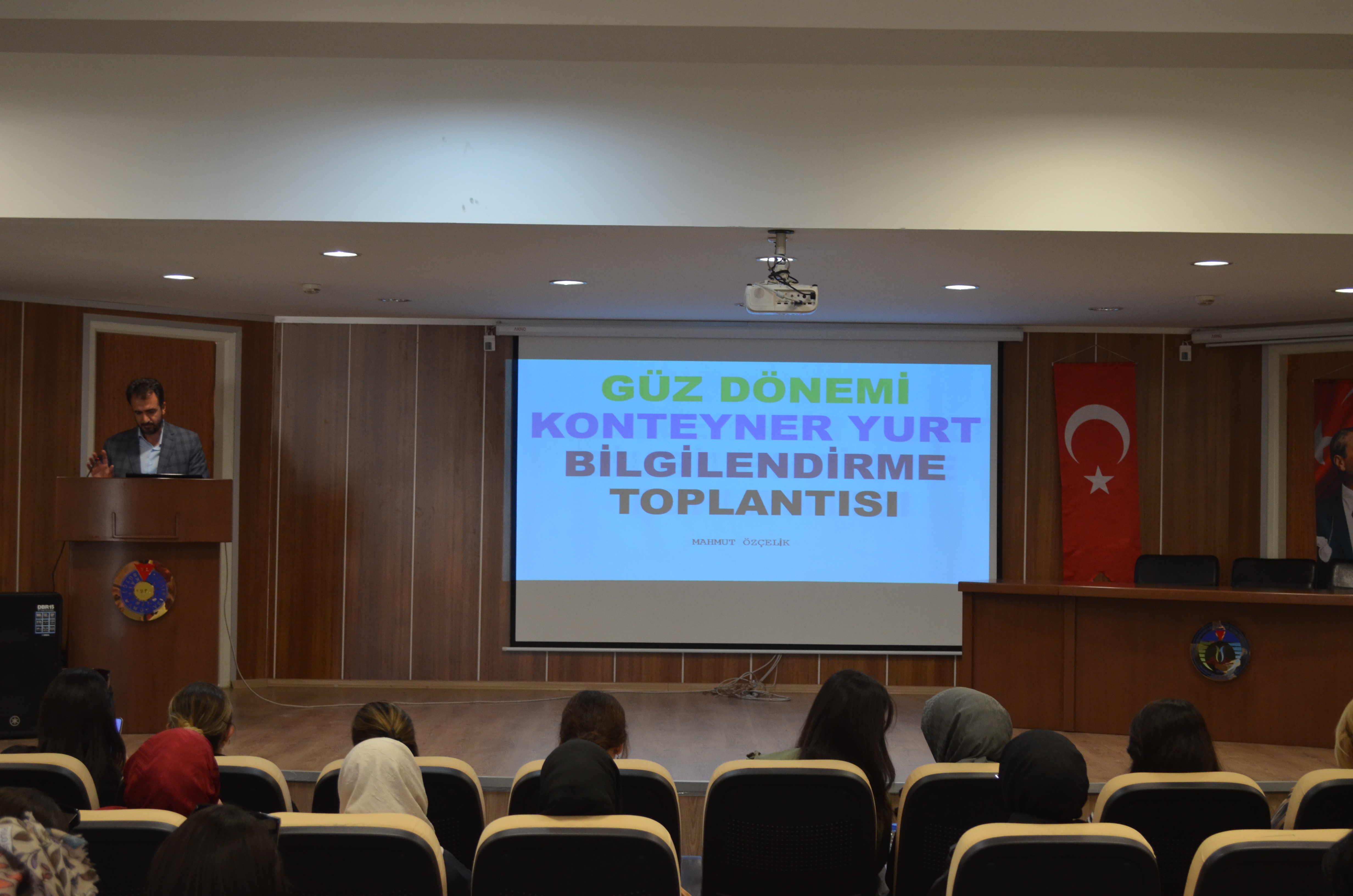 PMYO Müdür Yardımcısı Öğr. Gör. Mahmut ÖZÇELİK ve Konteyner Kız Öğrenci Yurt sorumlusu Emine KUTLU tarafından gerçekleştirilen toplantıda öğrencilere, yurdun kullanım koşulları, barınma imkanları ve dikkat edilmesi gereken kurallar hakkında detaylı bilgiler aktarıldı.