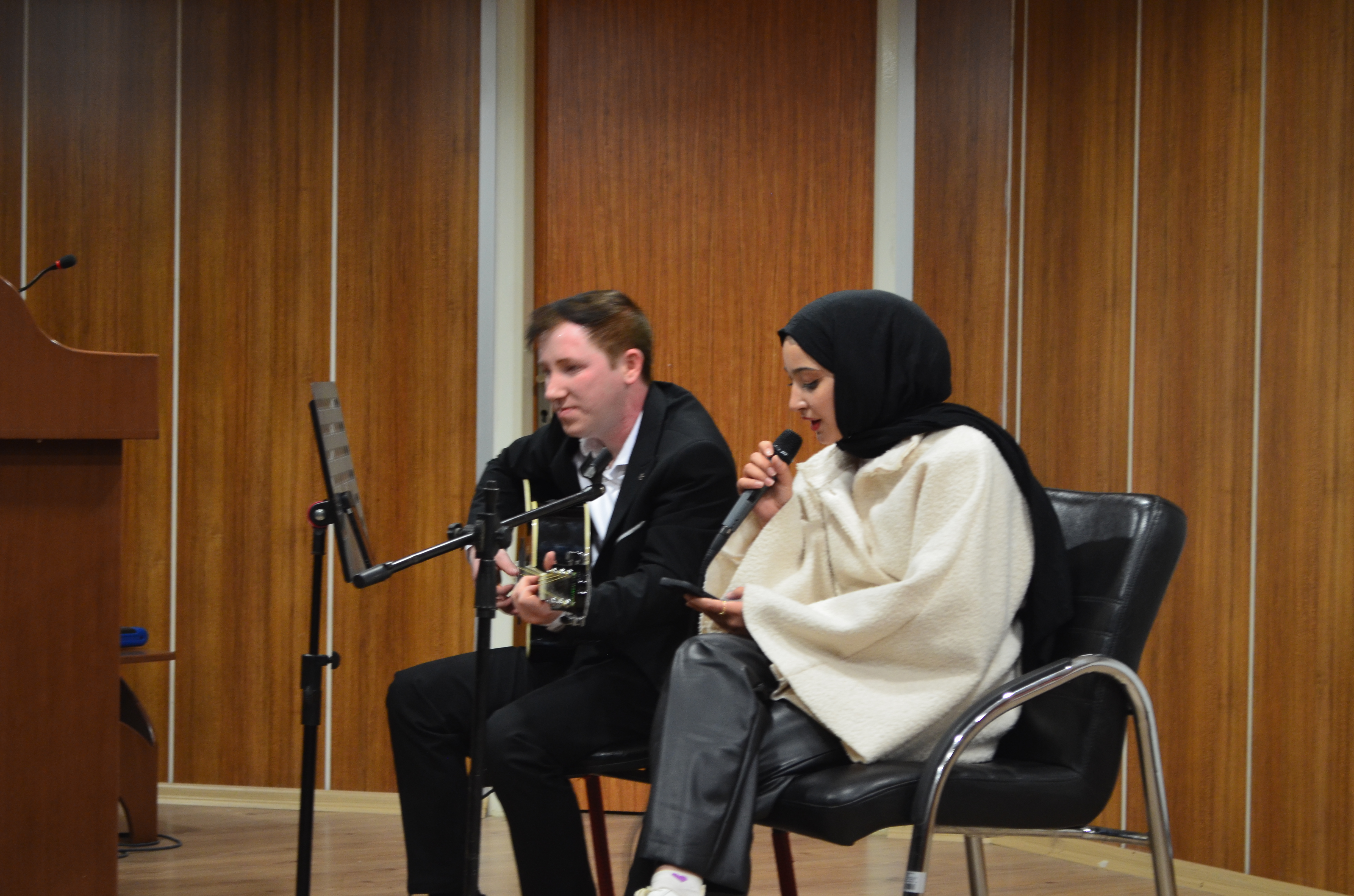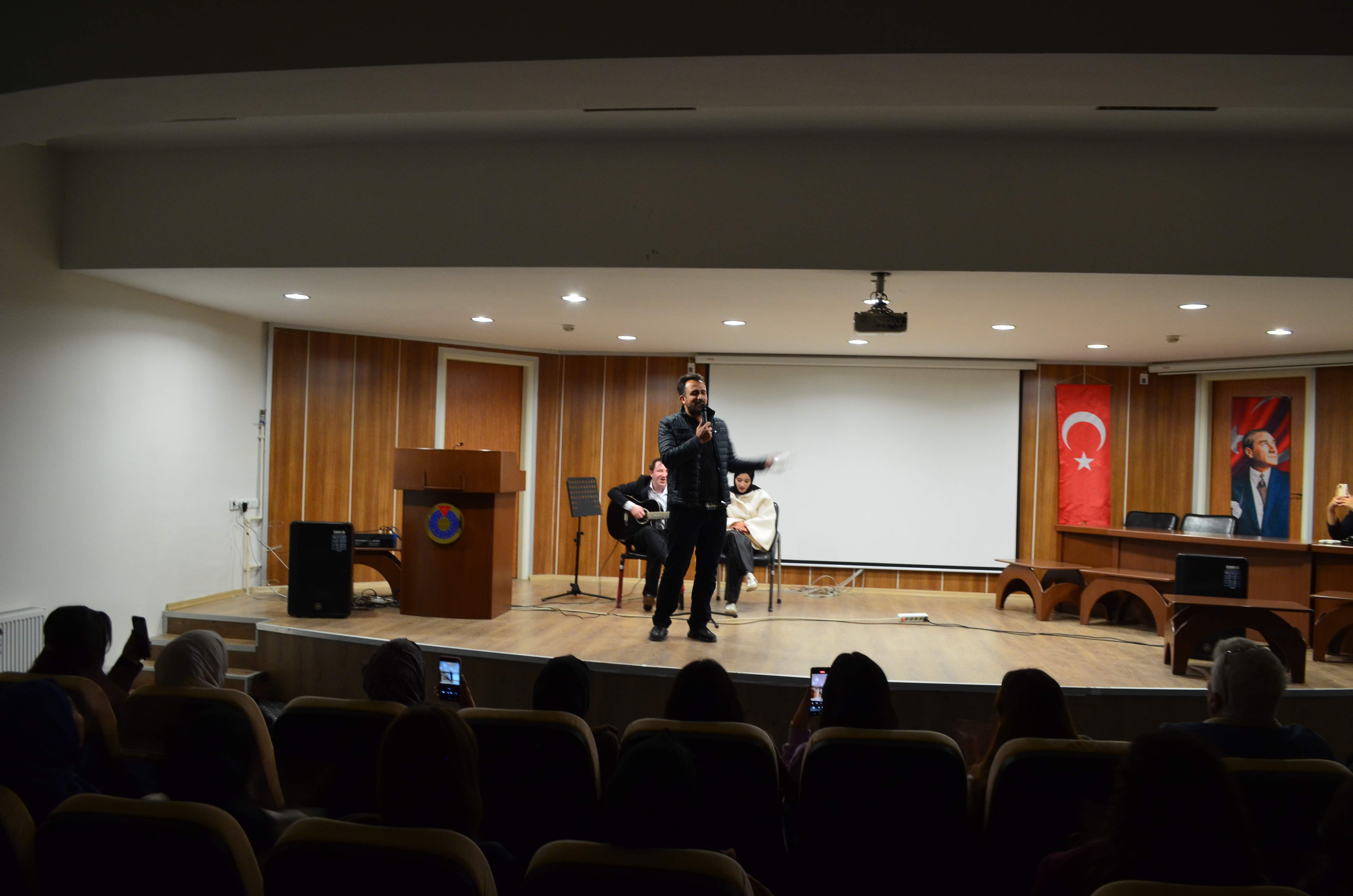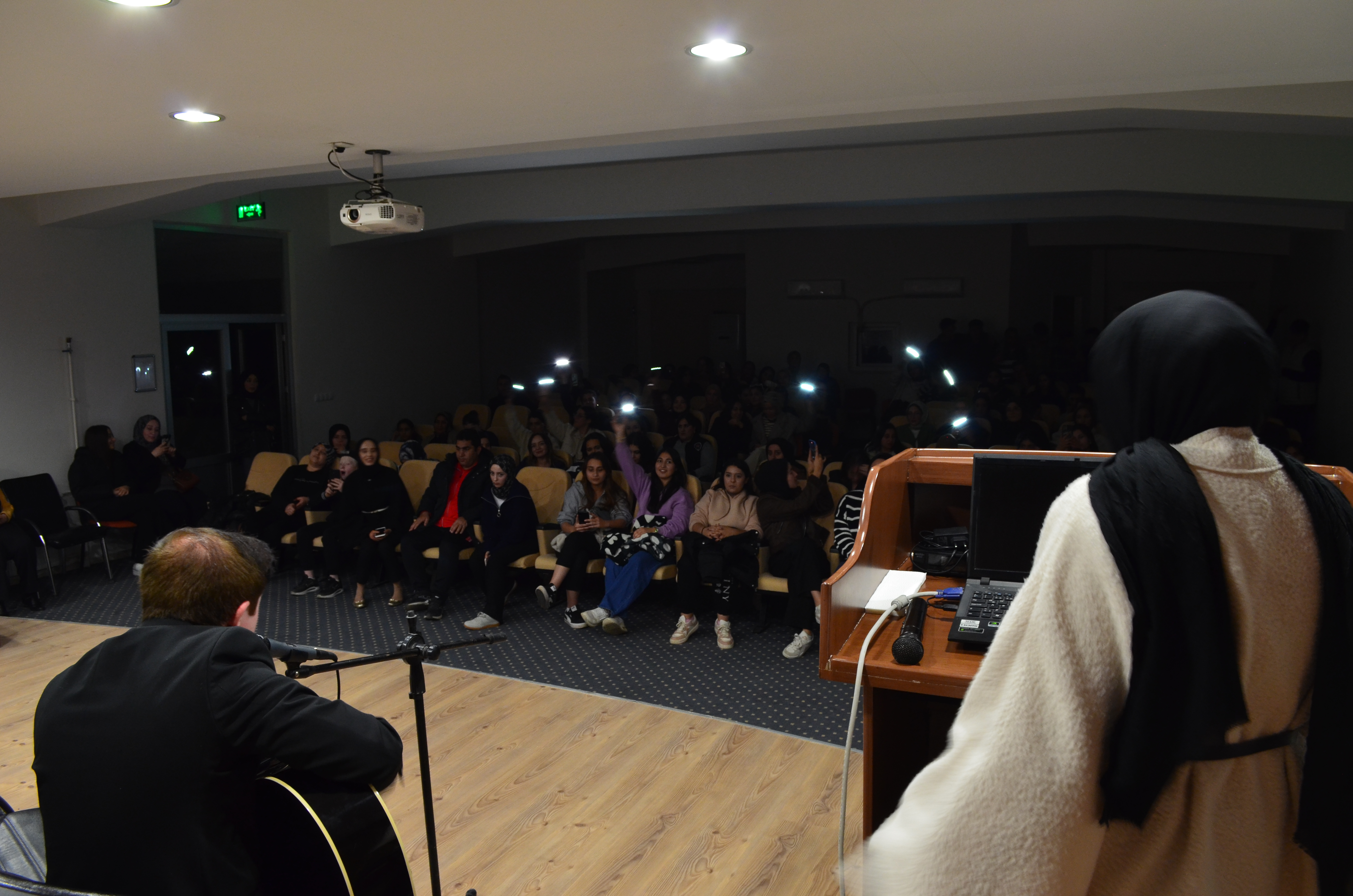 Okulumuz Yerel Yönetimler Programı 2. sınıf öğrencisi Nizam AKDAĞ, okul konferans salonunda gitar eşliğinde unutulmaz bir geceye imza attı. Akademik ve idari personelinde katıldı eğlencede öğrenciler gönüllerinde eğlendi. Gitar eşliğinde öğrencilerin birlikte söylediği parçalar, salonda sıcak ve samimi bir atmosfer oluşturdu.