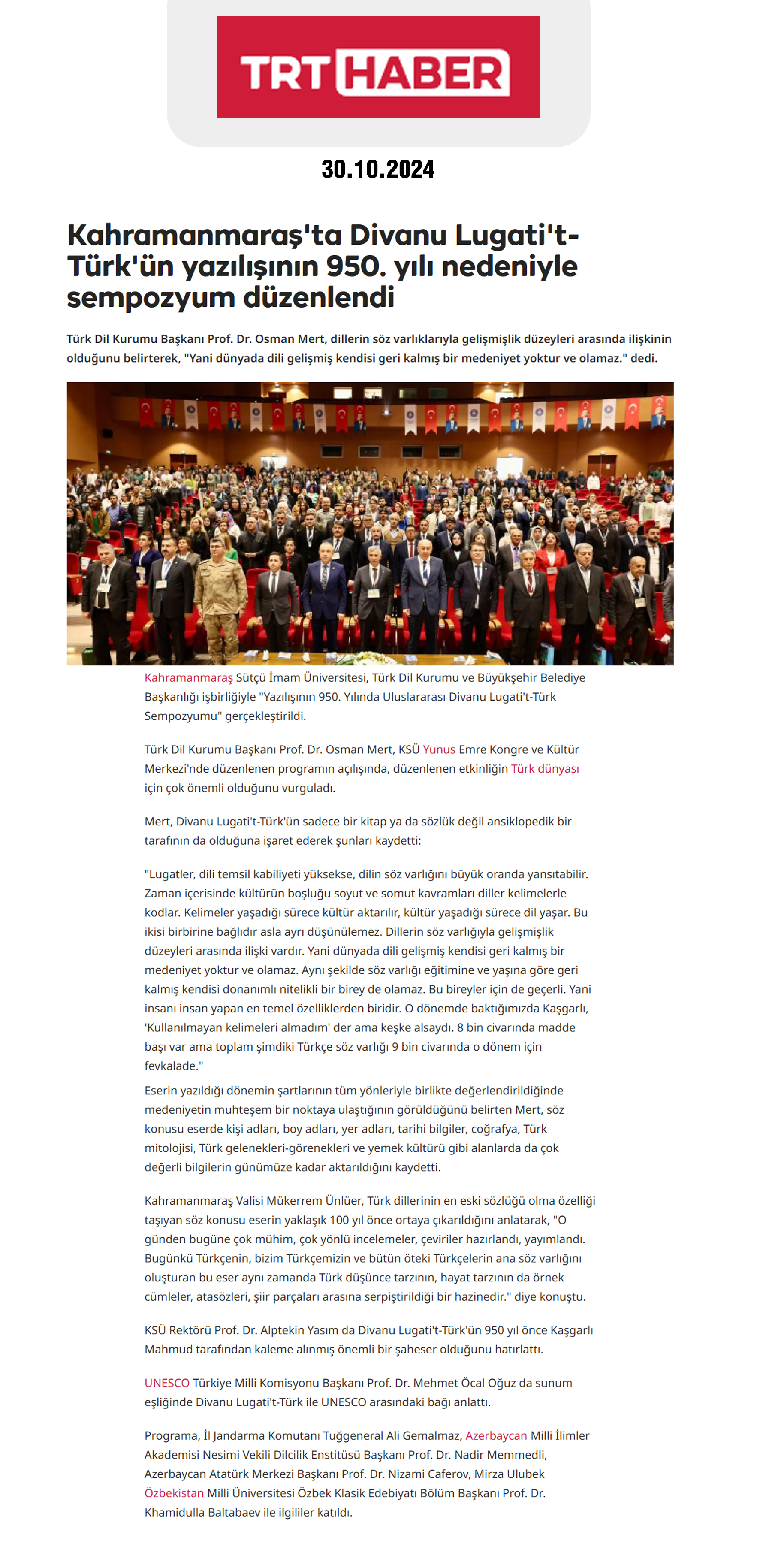 Haber Linki: https://www.trthaber.com/haber/guncel/kahramanmarasta-divanu-lugatit-turkun-yazilisinin-950-yili-nedeniyle-sempozyum-duzenlendi-885493.html