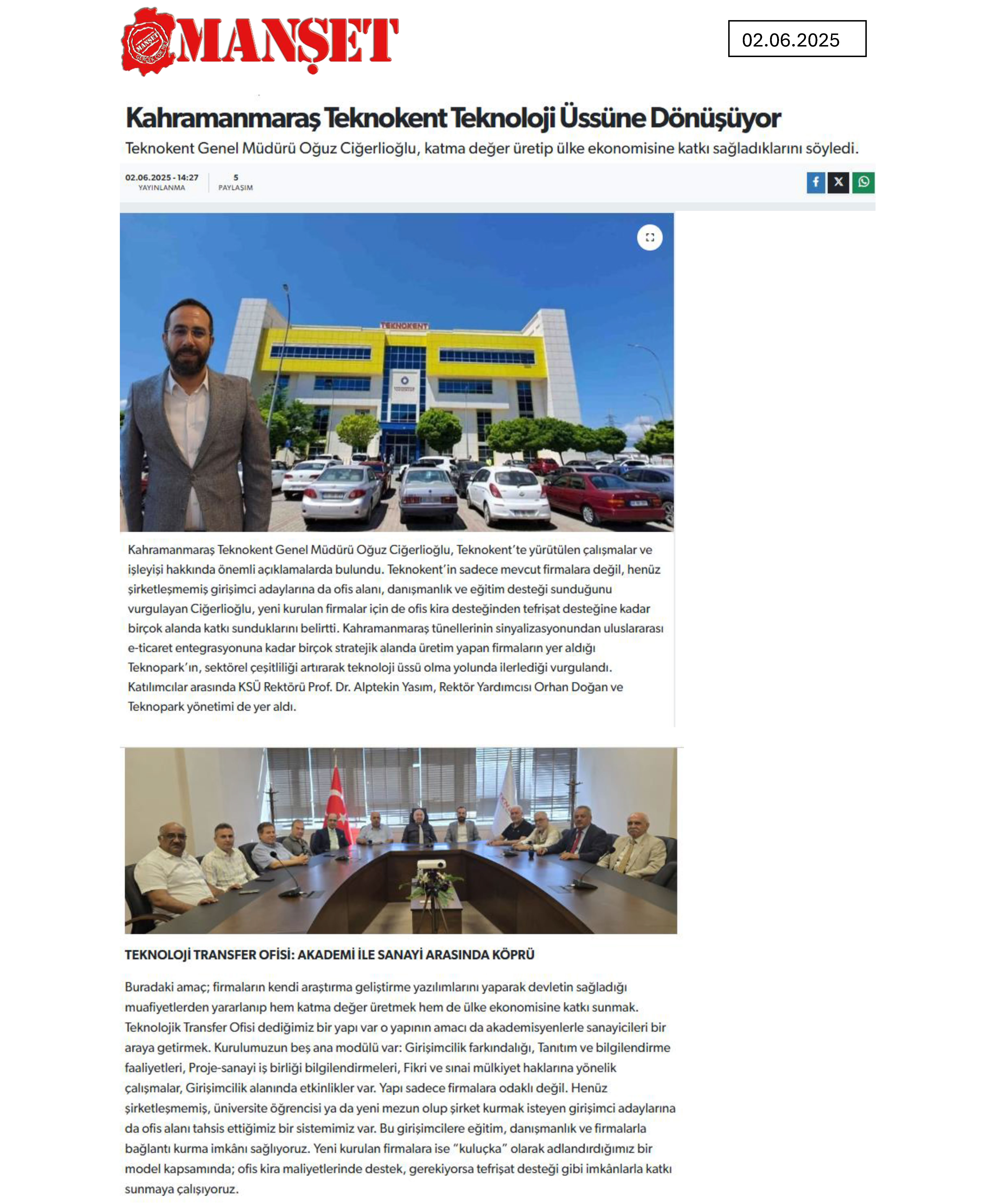 Kahramanmaraş Teknokent Teknoloji Üssüne Dönüşüyor