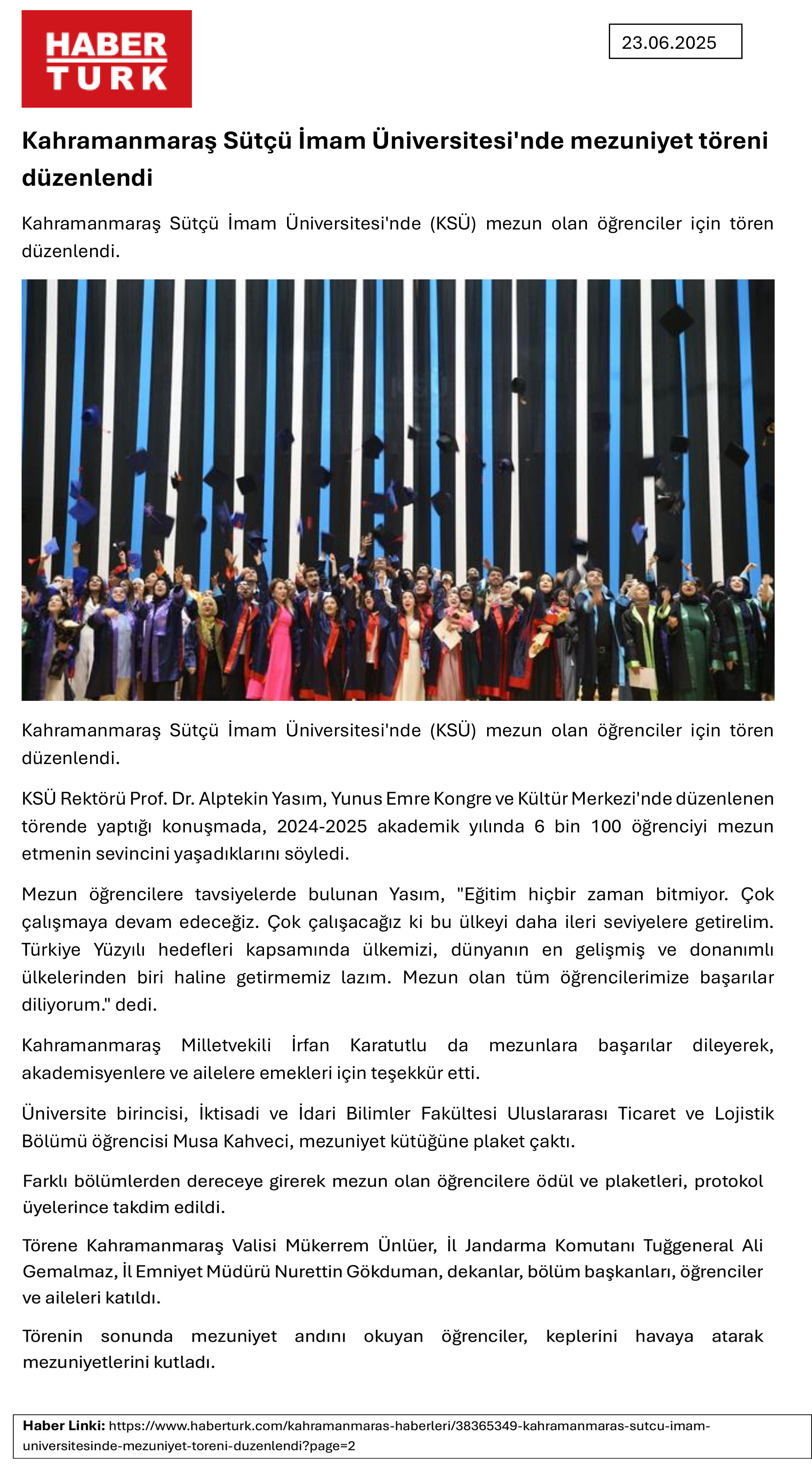 Kahramanmaraş Sütçü İmam Üniversitesi'nde mezuniyet töreni düzenlendi